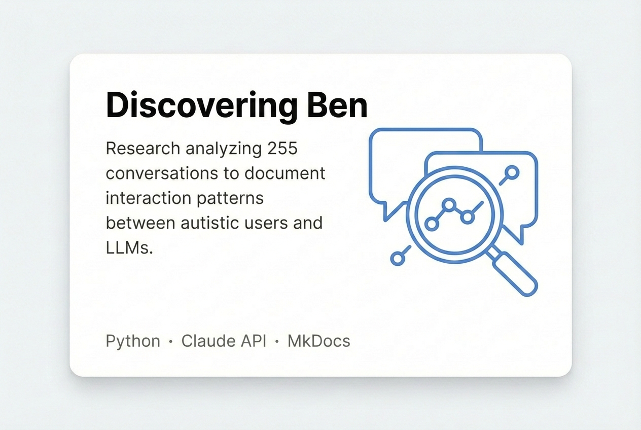 A groundbreaking research initiative documenting vicious reinforcement cycles in autism-LLM interactions. Analyzed 255 conversations revealing that 60-70% of interaction dysfunction originates from LLM responses, not user behavior.