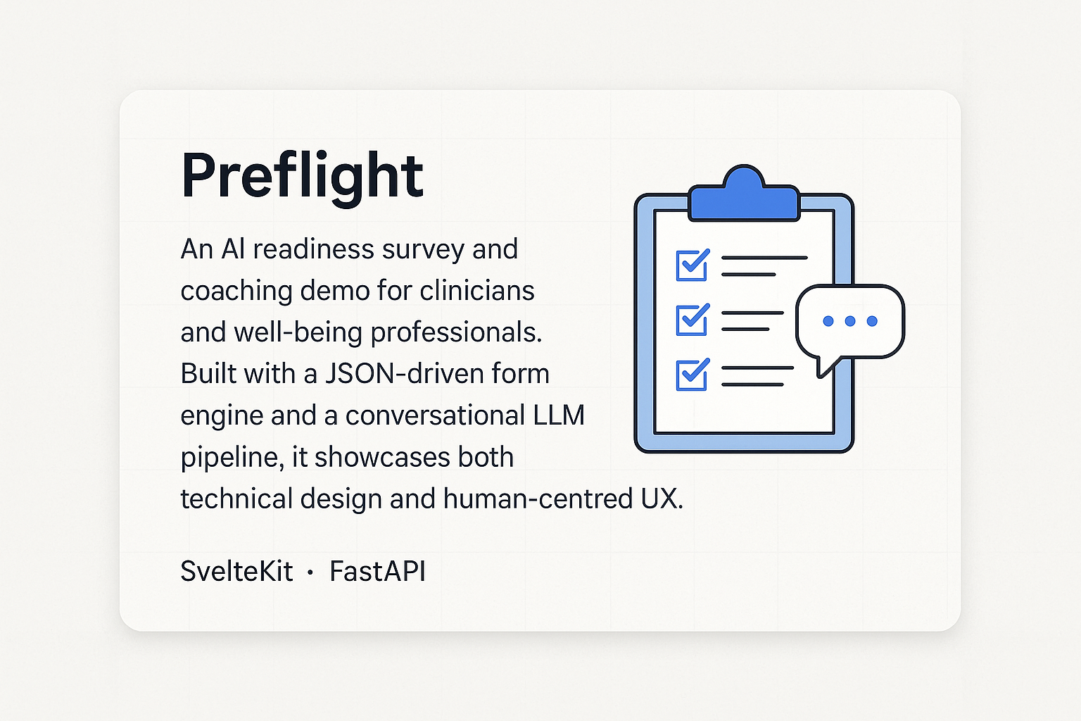 An assessment engine for clinicians exploring AI adoption. Current build showcases the JSON form system and design language.